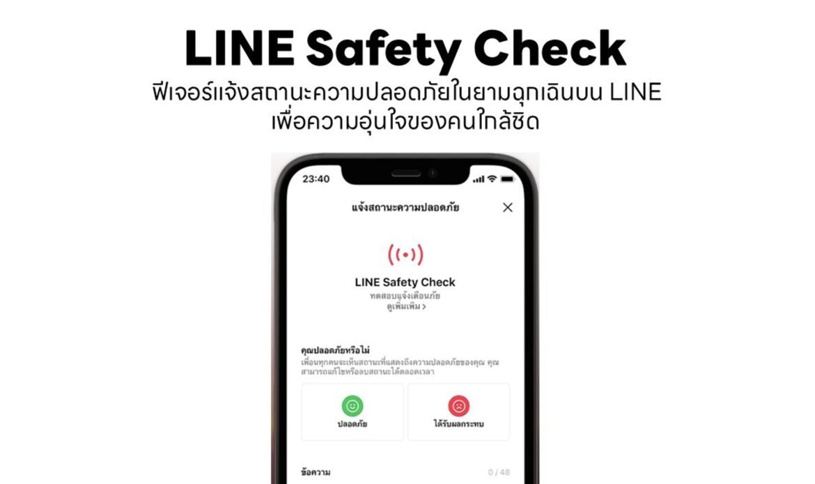 อีกหนึ่งฟีเจอร์ที่สะท้อนบทบาทของ LINE ในฐานะแพลตฟอร์มที่อยู่เคียงข้างคนไทย คือ ‘LINE Safety Check’ ฟีเจอร์เพื่อความปลอดภัยในภาวะภัยพิบัติหรือเหตุฉุกเฉิน ที่พัฒนาร่วมกับหลากหลายหน่วยงานภาครัฐ เพื่อช่วยให้การสื่อสารในช่วงเวลาวิกฤติเป็นเรื่องง่ายและรวดเร็ว