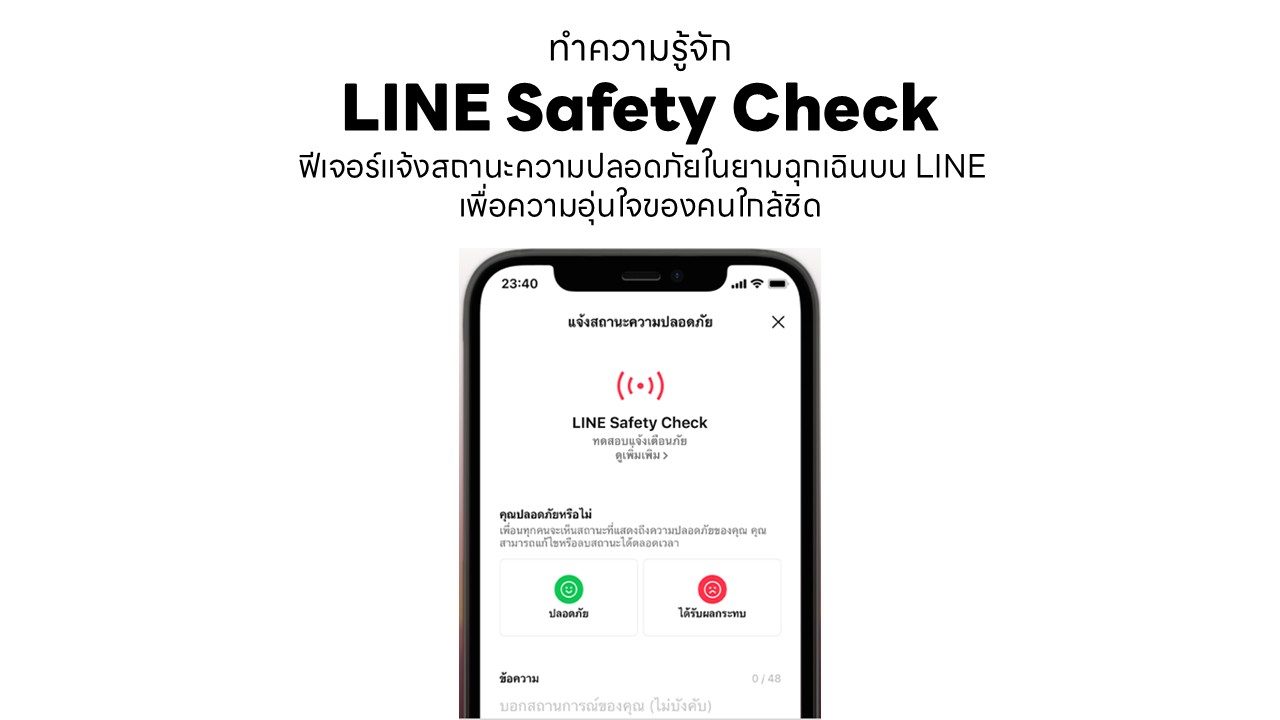 หลายคนอาจได้เห็นหรือมีส่วนร่วมกับการทดสอบฟีเจอร์แจ้งสถานะความปลอดภัยเพื่อรับมือสถานการณ์ฉุกเฉินที่ LINE ดำเนินการขึ้นเมื่อวันที่ 20 มกราคมที่ผ่านมา การทดสอบดังกล่าวสะท้อนให้เห็นถึงความสำคัญของการเตรียมความพร้อมด้านการสื่อสารในยามฉุกเฉิน และเป็นโอกาสให้หลายคนได้ทำความคุ้นเคยกับ LINE Safety Check ฟีเจอร์ที่ถูกออกแบบมาเพื่อช่วยให้ผู้ใช้สามารถแจ้งสถานะความปลอดภัยของตนเองได้อย่างรวดเร็วในสถานการณ์ฉุกเฉินที่การติดต่อสื่อสารอาจมีข้อจำกัด เพื่อให้ครอบครัว เพื่อน และคนใกล้ชิดสามารถรับทราบข้อมูลสำคัญนี้ได้พร้อมกัน